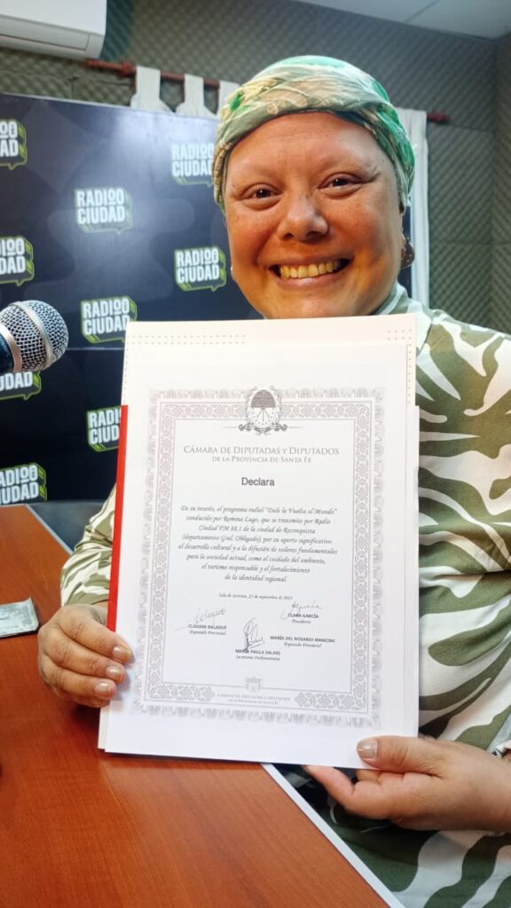 El compromiso con la comunicación responsable y el turismo sustentable tuvo su reconocimiento oficial. Romina Lugo, egresada del curso online de Periodismo de Turismo y Viajes dictado por la Universidad Tecnológica Nacional (UTN) a través de Elearning-Total, recibió la Declaración de Interés de la Cámara de Diputadas y Diputados de la Provincia de Santa Fe por su programa Dale la Vuelta al Mundo que se emite por Radio Ciudad FM 88.1 de Reconquista.